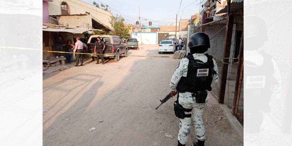 La víctima, de aproximadamente 20 años, y de quien solo se sabe que era conocido como ‘El Colación’, vestía un pantalón de mezclilla azul, sin playera, tenis blancos con negro y gorra azul mismo que presenta múltiples impactos de arma de fuego.Elementos de la Guardia Nacional realizaron un cerco mientras que los peritos especialistas recababan indicios que les permitan esclarecer los hechos.Hasta el momento se desconocen detalles de la agresión.