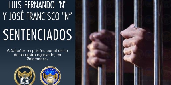 La Fiscalía General del Estado informó que un par de secuestradores que habían privado de la libertad a una menor de edad en Salamanca recibieron una sentencia condenatoria de 55 años de prisión.