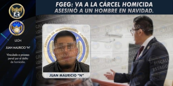 Juan Mauricio es acusado del asesinato de un hombre en la colonia Nuevo León, en hechos ocurridos el pasado 25 de diciembre en la ciudad de León; quedó en la cárcel vinculado a proceso.