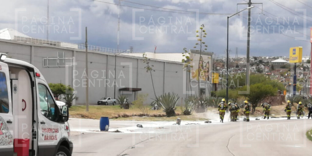 Esta tarde, un derrame de químicos tóxicos provocó el cierre del bulevar Timoteo Lozano mientras elementos de Bomberos y Protección Civil trabajaban para controlar la situación.