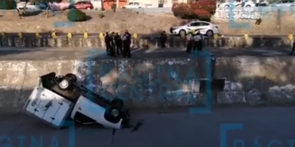 Los hechos ocurrieron la tarde de este sábado entre el Puente República y el bulevar Adolfo López Mateos, cuando el conductor de una camioneta de la pastelería La Poupée circulaba en la parte baja del Malecón del Río, perdió el control de la unidad y volcó.La camioneta quedó con las llantas hacia arriba frente a la entrada de la calle la Luz.