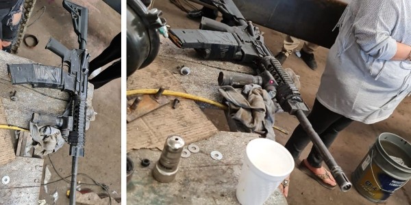 De acuerdo a lo que se observa en el video el grupo de hombres con armas largas ingresan al lugar y cruzan algunas palabras con los trabajadores que se encuentran en el negocio.