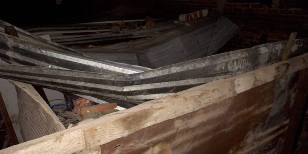 A través de una llamada al número de emergencias 911 se dio aviso a las autoridades que el techo de una vivienda había colapsado y al parecer había una persona al interior de la casa.