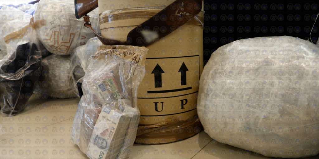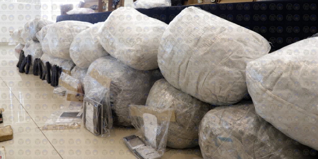 • Más de 160 kilogramos de droga entre cristal, cocaína, piedra base y marihuana• 7 vehículos• 1 motocicleta• $777 mil 500 pesos en efectivo• 20 armas de fuego largas y cortas• Cartuchos: 369• Cargadores: 30