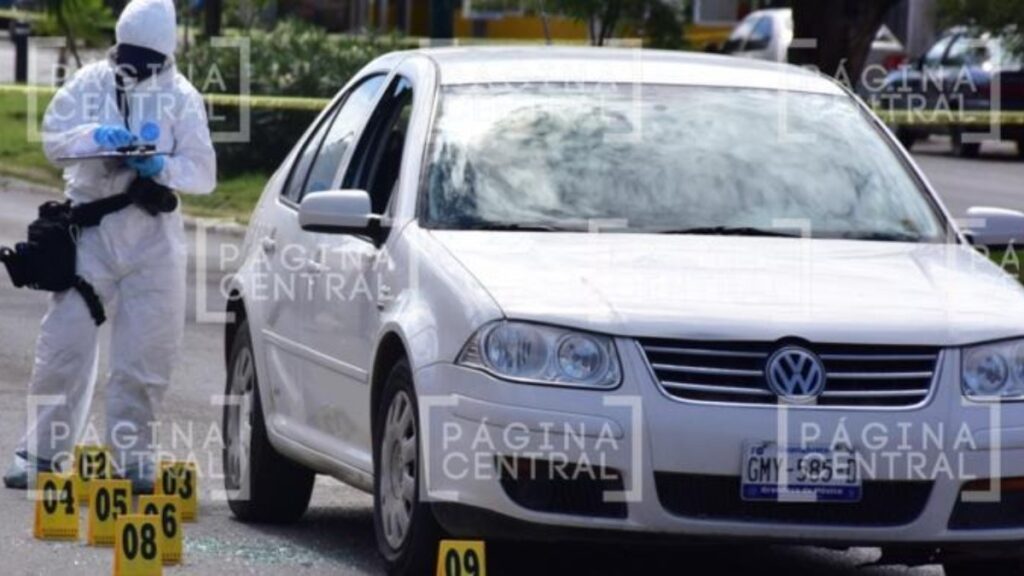 Cerca de las 12:30 de la tarde de este jueves, hombres a bordo de una motocicleta dispararon en contra de los hombres que viajaban en un Jetta Clásico blanco y que esperaban la luz verde del semáforo.