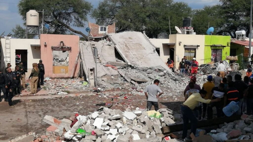 La tarde de este sábado explotó un tanque de gas de 30 kilos, lo que provocó el derrumbe de una vivienda habilitada como tienda de abarrotes en el municipio de Cortazar, dejando saldo de dos muertos, seis niños y cuatro adultos heridos.