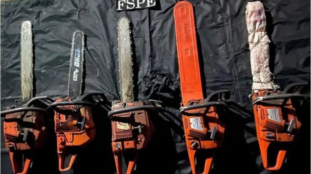 Así como cinco motosierras y 150 troncos de pino que eran transportados en los vehículos con plataforma.Tras lo ocurrido, tanto las personas, como los vehículos, el equipo de tala y la madera fueron asegurados y puestos a disposición de las autoridades competentes.