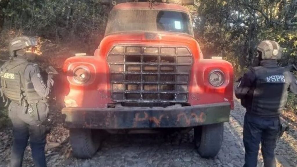 En el lugar se aseguraron los siguientes vehículos:-Un camión tipo Torton, marca Ford F-800 roja modelo 1976, tablillas de circulación del Estado de Michoacán-Un camión tipo Torton, marca International blanco con azul, modelo 1988, con tablillas de circulación del estado de Michoacán-Un camión tipo Torton, marca Ford F-600 azul, modelo 1973-Una camioneta Ford Ranger, tipo pick up blanco, con el Número de Identificación Vehicular (NIV) alterado por acción mecánica-Un camión, tipo Torton azul claro, NIV alterado por acción mecánica-Un camión, tipo grúa artesanal rojo sin tablillas de circulación y NIV alterado por acción mecánica-Una camioneta Ford, Super Duty 450, modelo 2003 blanca-Una camioneta Ford Lobo F150, tipo pick up, modelo 1997 verde-Una motocicleta marca Italika azul con negro, sin tablillas de circulación y NIV alterado por acción mecánica