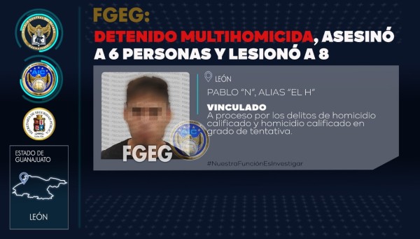El inculpado fue detenido por la Fiscalía General del Estado en coordinación con la Secretaría de Seguridad Pública de León, en posesión de droga y un arma de fuego; al quedar a disposición del Ministerio Público, la investigación llevó al análisis del arma en el Sistema Integrado de Identificación Balística (IBIS), y arrojó coincidencias microscópicas que acreditan la relación entre el arma asegurada y los indicios balísticos acopiados en la escena del multihomicidio.