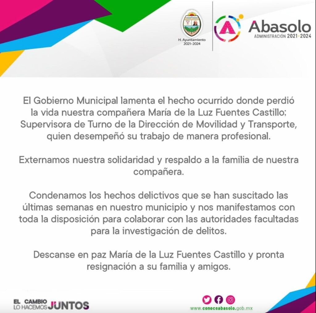 Horas más tarde, el gobierno municipal de Abasolo emitió un comunicado en el que lamentó el hecho y señaló que desempeñaba su trabajo de manera profesional.