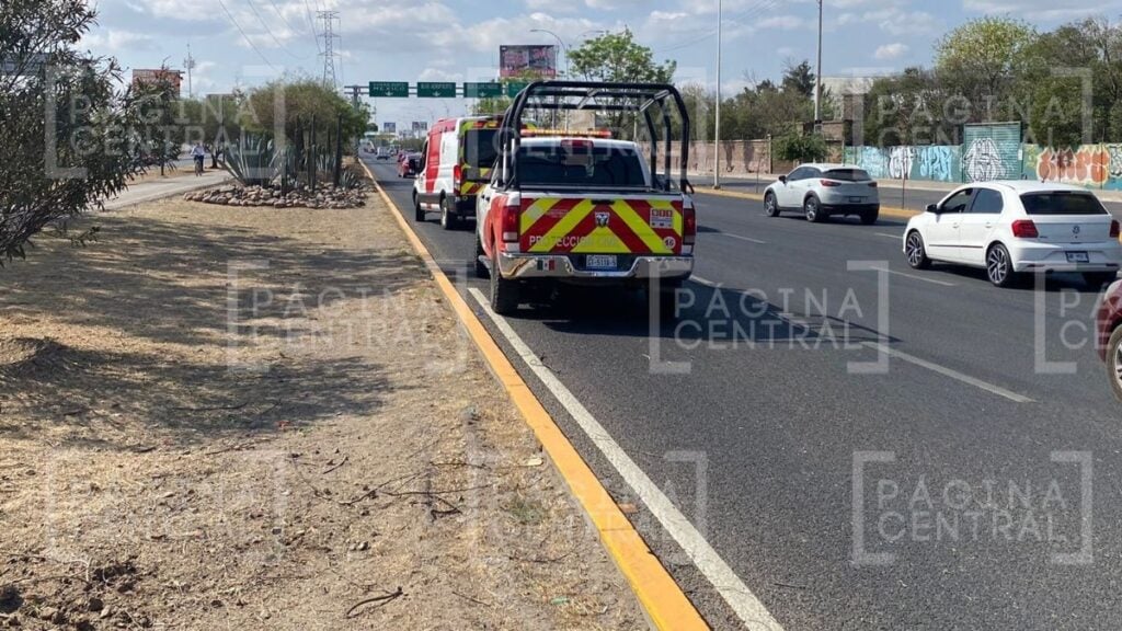 Según la información preliminar, los conductores de varios vehículos que circulaban sobre el libramiento a la altura de Fracciones Cañada de Alfaro rumbo al bulevar Aeropuerto frenaron para evitar atropellar a un perrito que se atravesó en el bulevar.