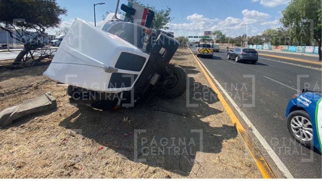 Para evitar impactar a vehículos que se detuvieron en el libramiento para no atropellar a un perrito, el conductor de un tractocamión 'volanteó', se subió al camellón y chocó contra un árbol.
