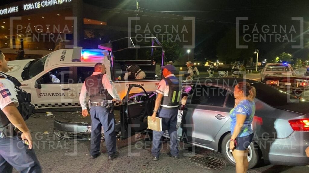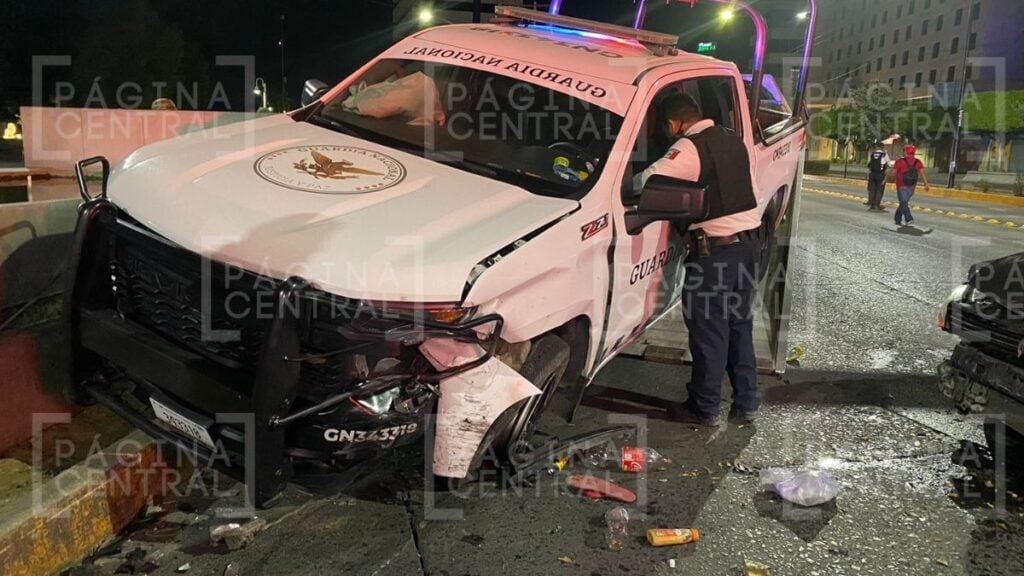 El accidente se registró en la esquina de la avenida Francisco Juárez, cuando el conductor que manejaba el vehículo de la Guardia Nacional quería ganarle el paso.
