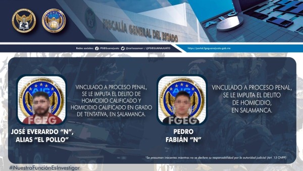 La Fiscalía General del Estado obtuvo prisión para dos presuntos homicidas en Salamanca, uno es inculpado de privar de la vida a un hombre en una barbería, el otro es acusado de asesinar a una persona y lesionar gravemente a una menor, en un domicilio particular en Avenida del Trabajo. Los hechos ocurrieron en junio y octubre de 2022, respectivamente.
