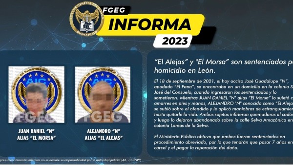 La Fiscalía General del Estado de Guanajuato dio a conocer este miércoles dos sentencias contra los homicidas de dos leoneses.