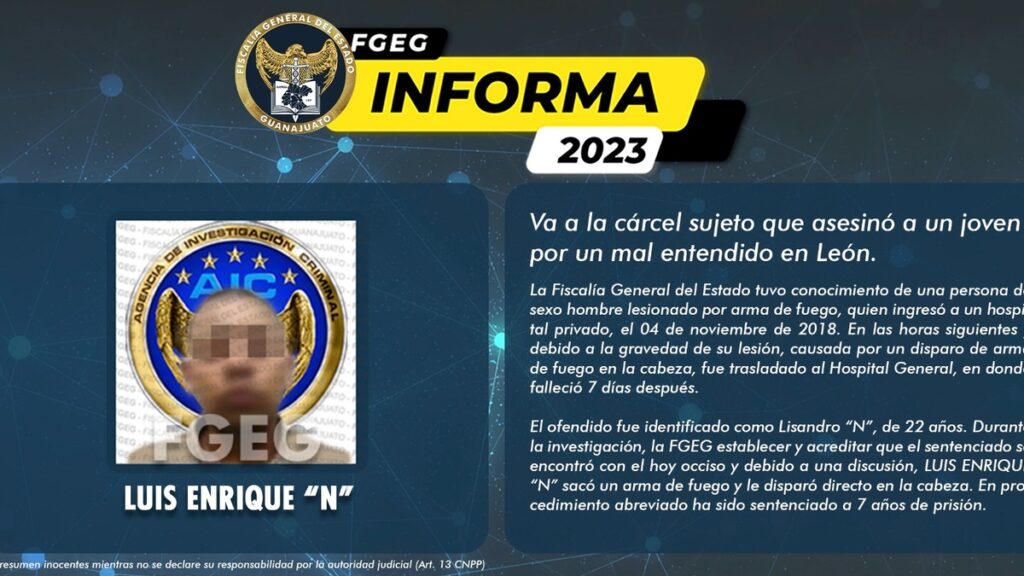 El ofendido fue identificado como Lisandro, de 22 años. Durante la investigación, la FGEG estableció y acreditó que el sentenciado se encontró con el hoy occiso, y debido a una discusión, Luis Enrique sacó un arma de fuego y le disparó directo en la cabeza. En procedimiento abreviado ha sido sentenciado a siete años de prisión.