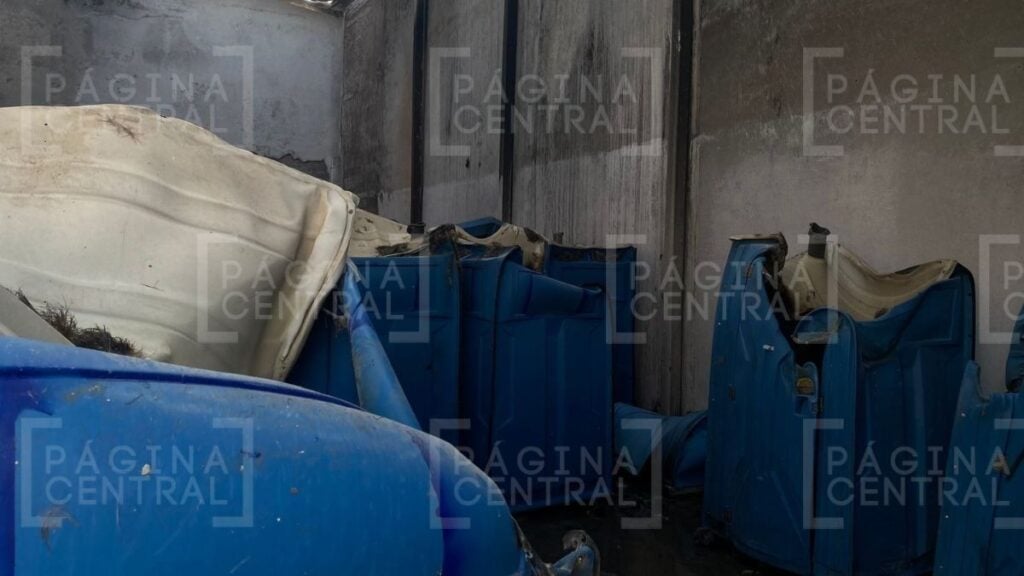 Parte de la bodega donde se almacenaban estos baños también fue dañada por las llamas.