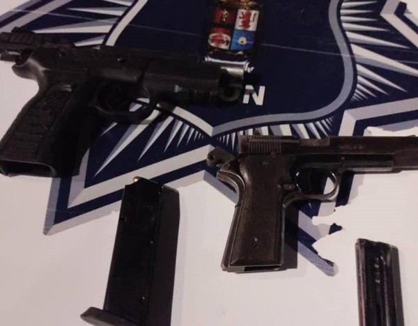 En el lugar también se les aseguraron dos armas de fuego cortas, 16 cartuchos útiles, siete teléfonos celulares y dos envoltorios de droga cristal.