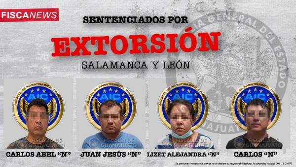León.- La Fiscalía de Guanajuato obtuvo que tres hombres y una mujer fueran detenidos por extorsión en Salamanca y León.