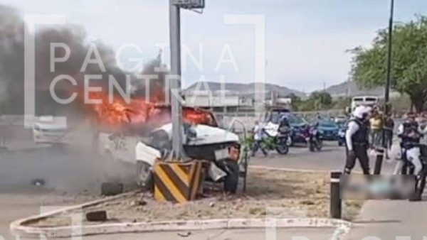 Al parecer, la camioneta circulaba a exceso de velocidad por la mencionada vialidad cuando el conductor perdió el control, chocó contra un poste y se incendió en la parte de la cabina.