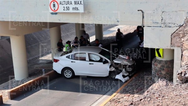 León.- Solo daños materiales se registraron esta tarde luego de que un vehículo chocara en la parte baja del Malecón del Río contra un pilar del puente vehicular del lugar.