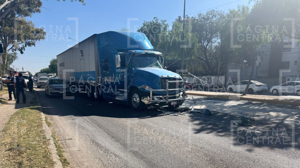 León, Guanajuato - Sin lesionados pero cuantiosos daños materiales fue el saldo de un accidente vial entre un tráiler y tres vehículos en el bulevar Aeropuerto a la altura de La Pilarica.