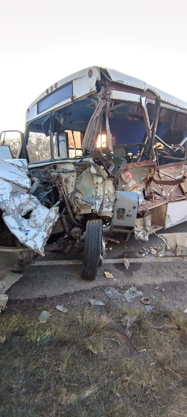 De acuerdo con información preliminar, dos camiones de transporte de personal chocaron de frente.
