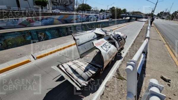 El incidente ocurrió debido a que la camioneta no pudo superar la altura máxima permitida de 2 metros con 50 centímetros, en hechos ocurridos en la parte baja del Malecón del Río de los Gómez casi esquina con calle Alud.
