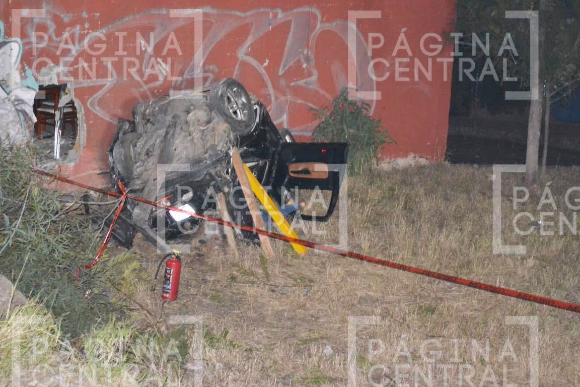 El auto iba de San Juan Bosco hacia la colonia Las Mandarinas cuando de pronto el conductor perdió el control, se volcó, cruzó un terreno enmallado de una escuela primaria y se estrelló contra el muró del restaurante 'Doña Chilaca' donde quedó hecho pedazos.