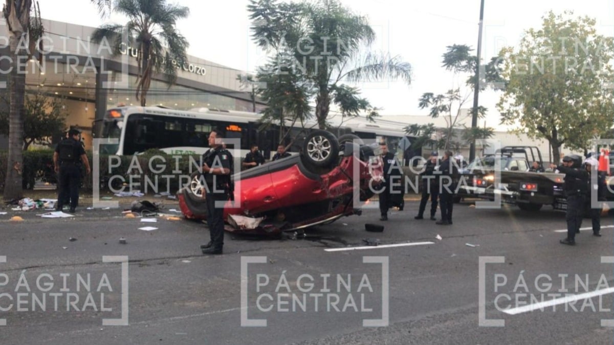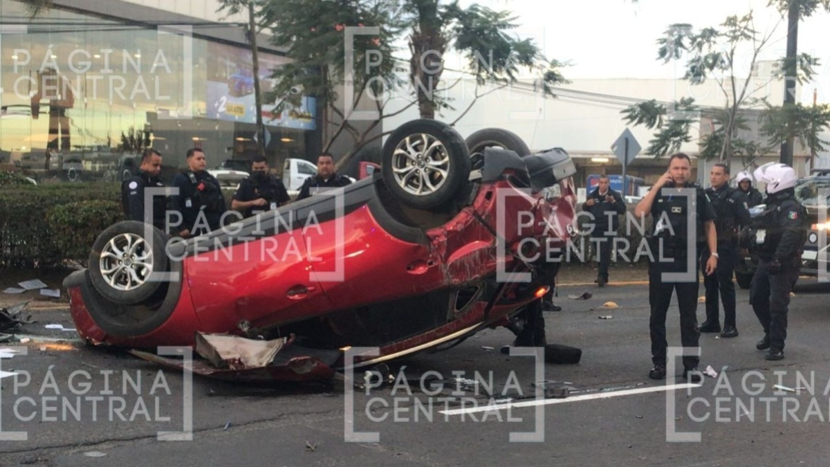 León, Guanajuato - Pistoleros que iban en una camioneta robada y que eran perseguidos por la Policía de León volcaron en el bulevar Adolfo López Mateos, frente a Nissan Torres Corzo.
