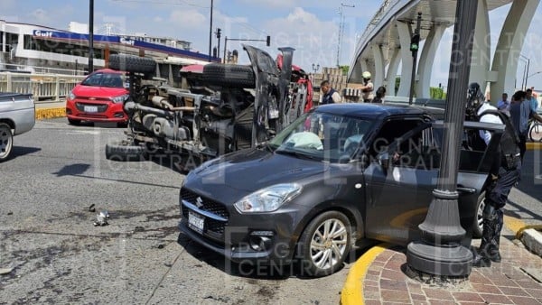 ¡Choque en el Puente del Amor! Conductor se pasa el rojo y causa volcadura de camioneta