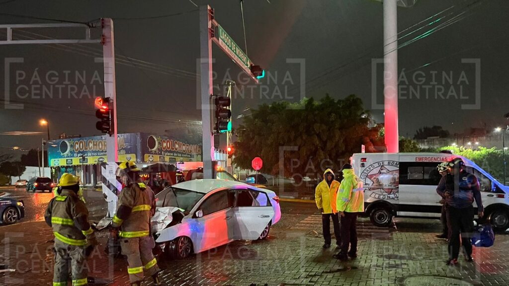 León, Guanajuato - El conductor de un automóvil que al parecer circulaba en estado de ebriedad chocó contra la base de un semáforo en el bulevar Insurgentes.