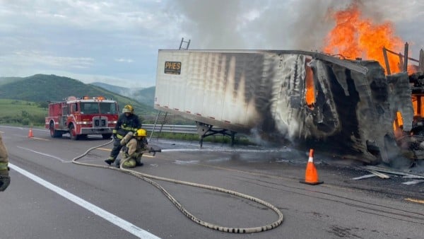 Al parecer, las balatas del camión comenzaron a quemarse, lo cual habría provocado el incendio en la parte trasera de la caja del tráiler.