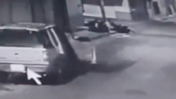 La grabación muestra cómo de una camioneta familiar blanca ya estacionada se bajan cuatro hombres, quienes son los presuntos asesinos de la calle Pénjamo.