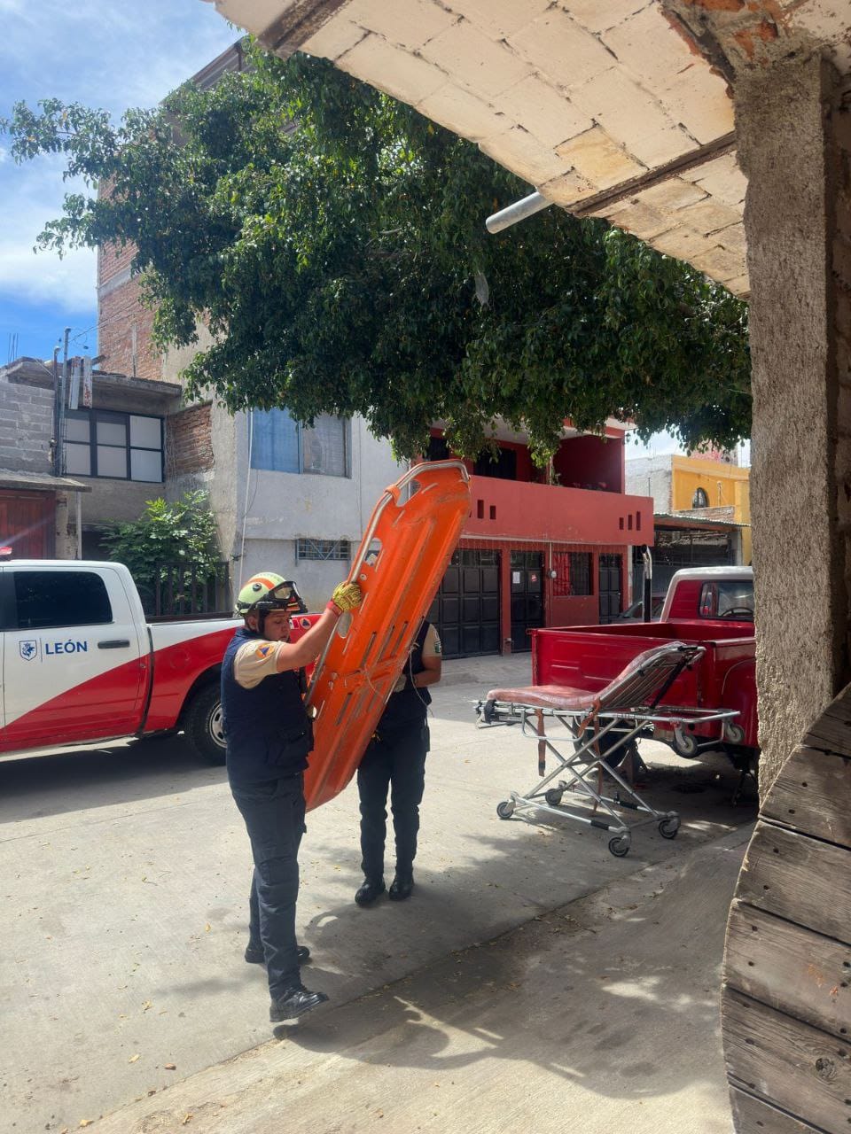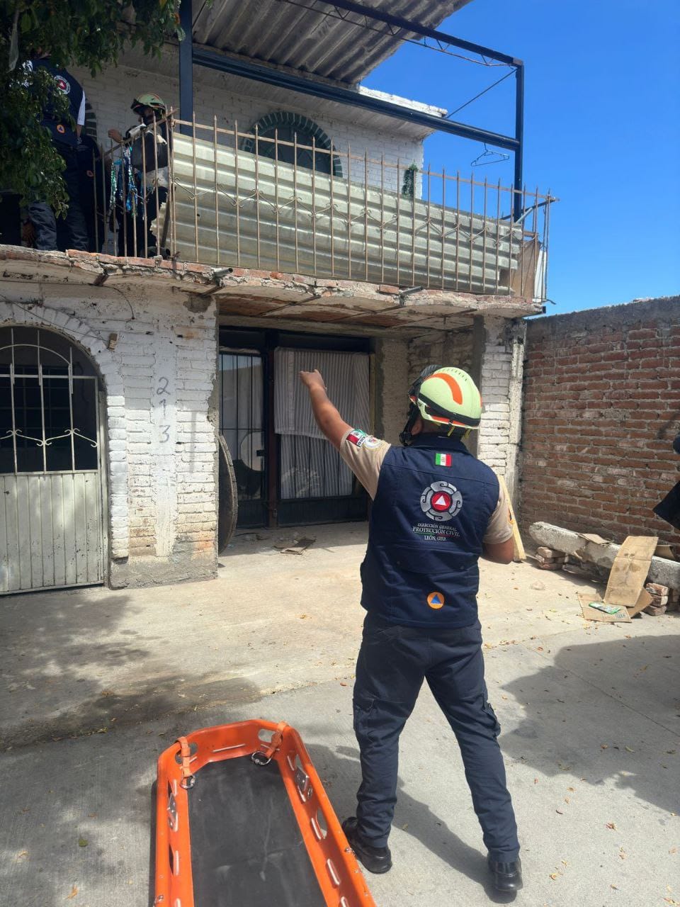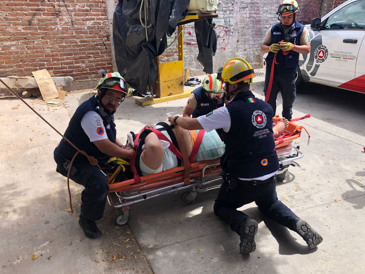 León Guanajuato- Esta tarde personal de Protección Civil apoyó a una mujer que sufrió una caída por un accidente doméstico en la colonia Oriental Anaya. Para ayudarla a bajar del segundo piso donde se encontraba, los elementos tuvieron que implementar varias maniobras de rescate vertical con equipo especial.