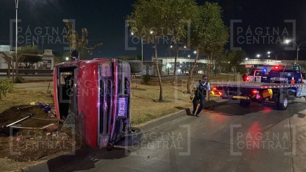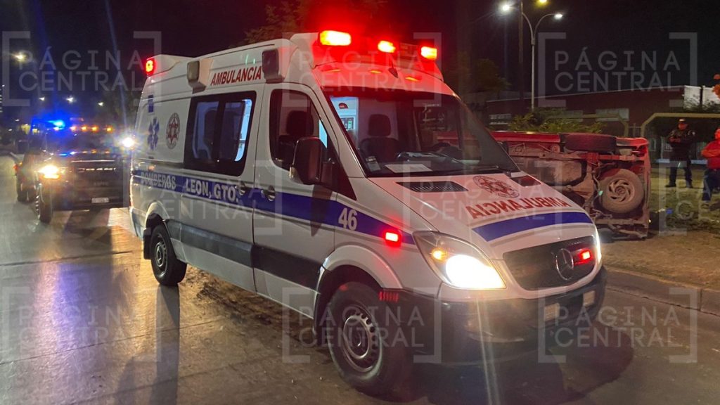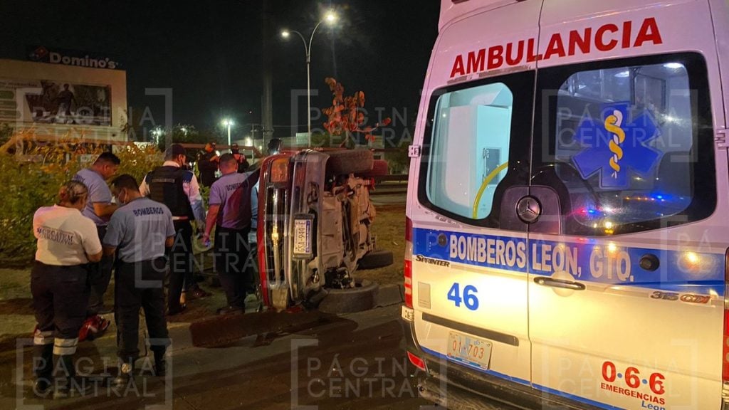 León, Guanajuato - Una aparatosa volcadura de una camioneta se registró la madrugada de este sábado en el Libramiento José María Morelos, a la altura de la colonia Industrial Delta.
