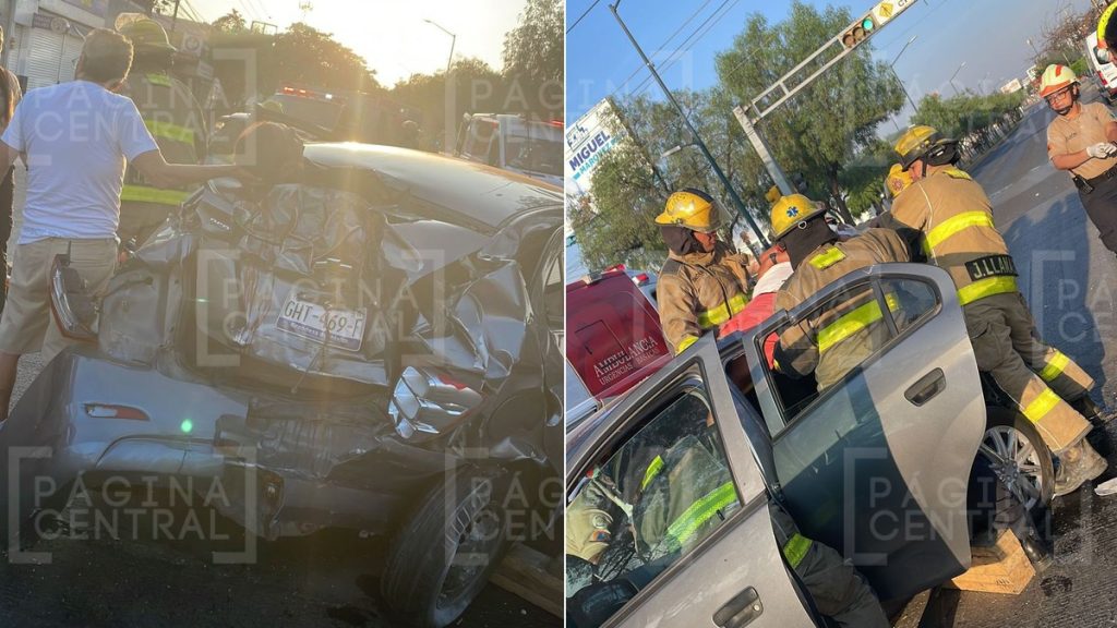 Debido al impacto, el conductor del carro quedó prensado entre la parte delantera del vehículo y la cajuela, y con apoyo del equipo de rescate urbano, lo lograron sacar.