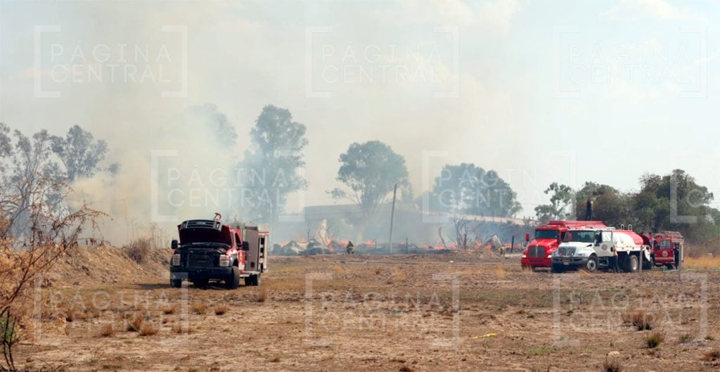 León, Guanajuato - Un incendio que comenzó en un pastizal se extendió hasta una maderería en la colonia San José del Clavel, misma que quedó en pérdida total. Hasta el momento no se reportan lesionados.