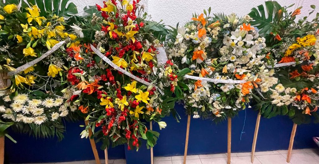 En la madrugada de este domingo, elementos de la Policía Municipal Preventiva de Guanajuato capital retiraron cuatro coronas de flores que habían sido colocadas en diferentes puntos de la ciudad por individuos que se desplazaban en un vehículo.