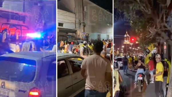 Salamanca, Guanajuato - Aficionados que celebraban el bicampeonato del América en la plaza cívica 'Miguel Hidalgo' agredieron a elementos de la Guardia Nacional y la Policía Municipal, causando lesiones a los oficiales y daños materiales a las unidades.