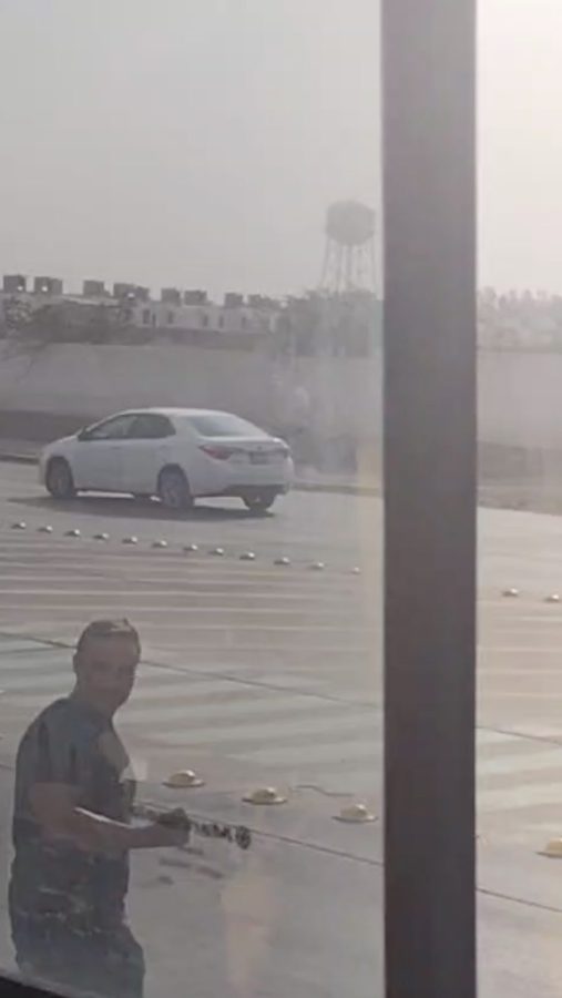 Después, el agresor se va por el lado del conductor y arroja otra piedra contra la ventanilla.