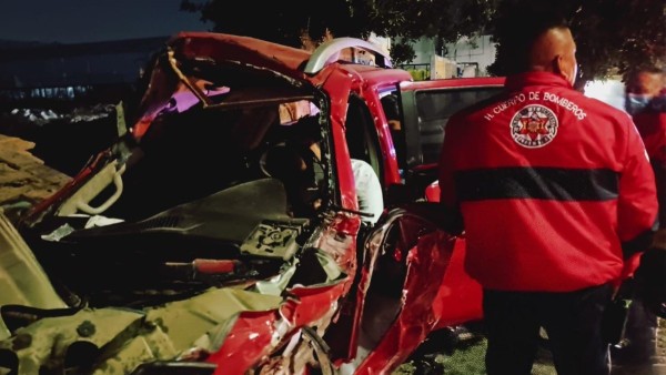 Para sacar al joven, personal de Bomberos tuvo que arrancar la puerta de la camioneta, pues quedó trabada debido al fuerte impacto.