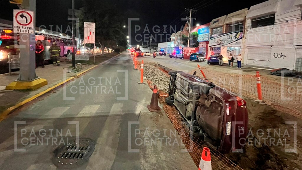 Según el informe preliminar, la falta de señalización fue la causa de que un automóvil Nissan Platina, color guinda, circulara en un espacio en construcción, lo que provocó la volcadura en una de las zanjas abiertas por las obras.