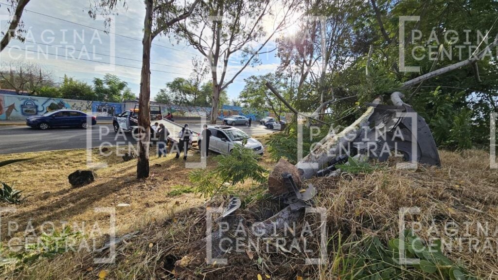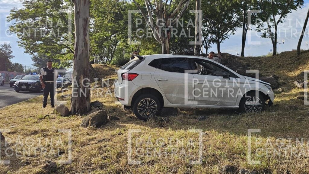 Por ahí circulaba un joven de alrededor de 20 años a bordo de un automóvil Seat blanco, pero en un momento perdió el control de la unidad, se salió del camino y se subió al camellón, donde impactó contra un árbol y terminó volcado.