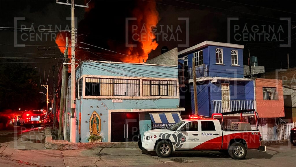 León- Un gran incendio se registró la noche de este lunes en la colonia María Dolores al interior de una fábrica de textiles, Bomberos y elementos de Protección Civil se encuentran laborando para controlar las llamas.