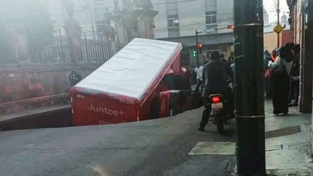 “¡Cierren los ojos, señor!” Gran socavón se traga camioneta y casi un camión de la Coca