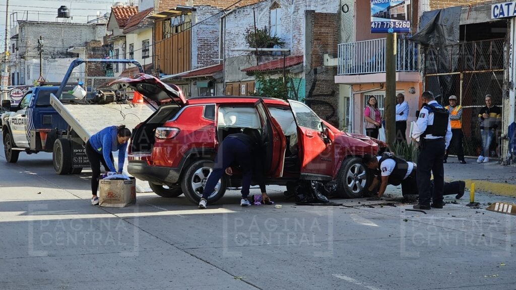 León, Guanajuato - La conductora de una camioneta perdió el control del volante y terminó volcada en el bulevar Vasco de Quiroga.