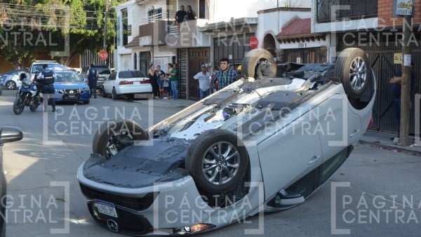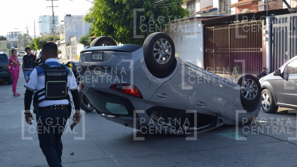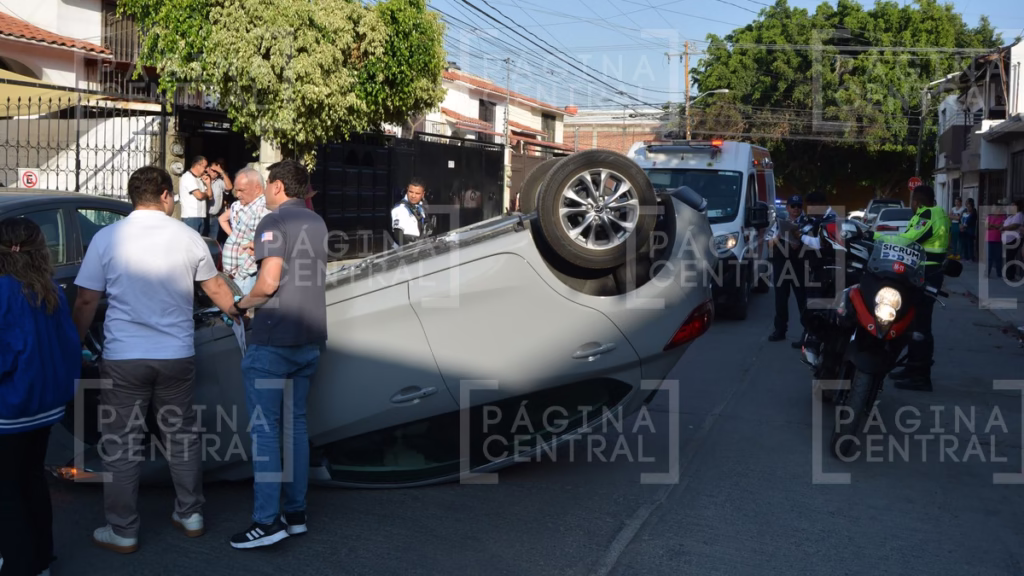 La conductora del Mazda, identificada como Mildred, aparentemente no logró esquivar el automóvil estacionado, lo que provocó el impacto y la posterior volcadura de su unidad.