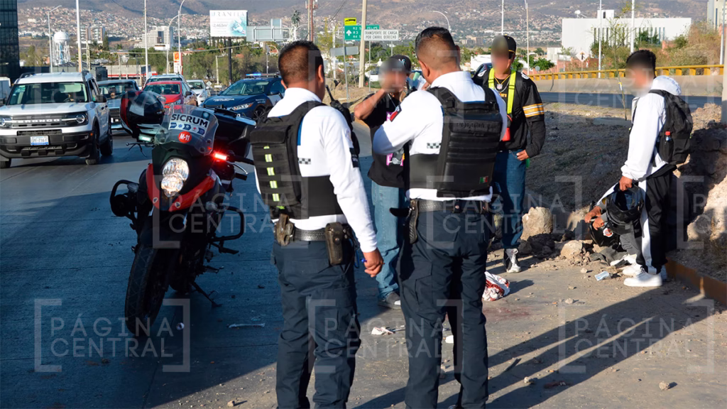 El reloj marcaba las 5:10 p.m. cuando Christian Adrián, quien circulaba en su motocicleta en dirección a la salida hacia Lagos de Moreno, perdió el control del vehículo y se estrelló violentamente contra un muro de piedra que delimita la vialidad.
