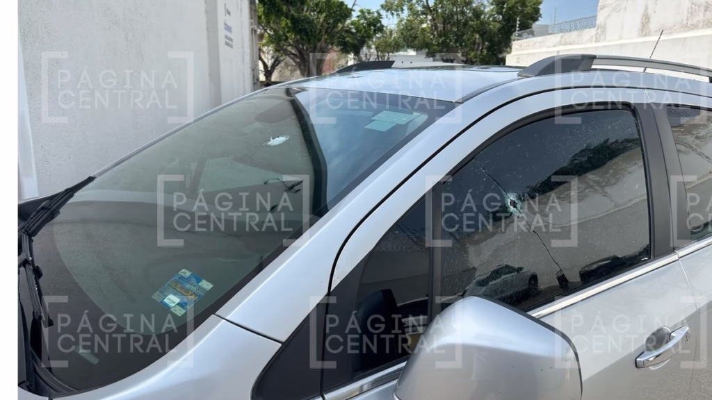 El proyectil impactó en su camioneta Chevrolet Trax gris, que presentaba daños visibles. Asustada, la mujer regresó a la sucursal bancaria para solicitar apoyo.